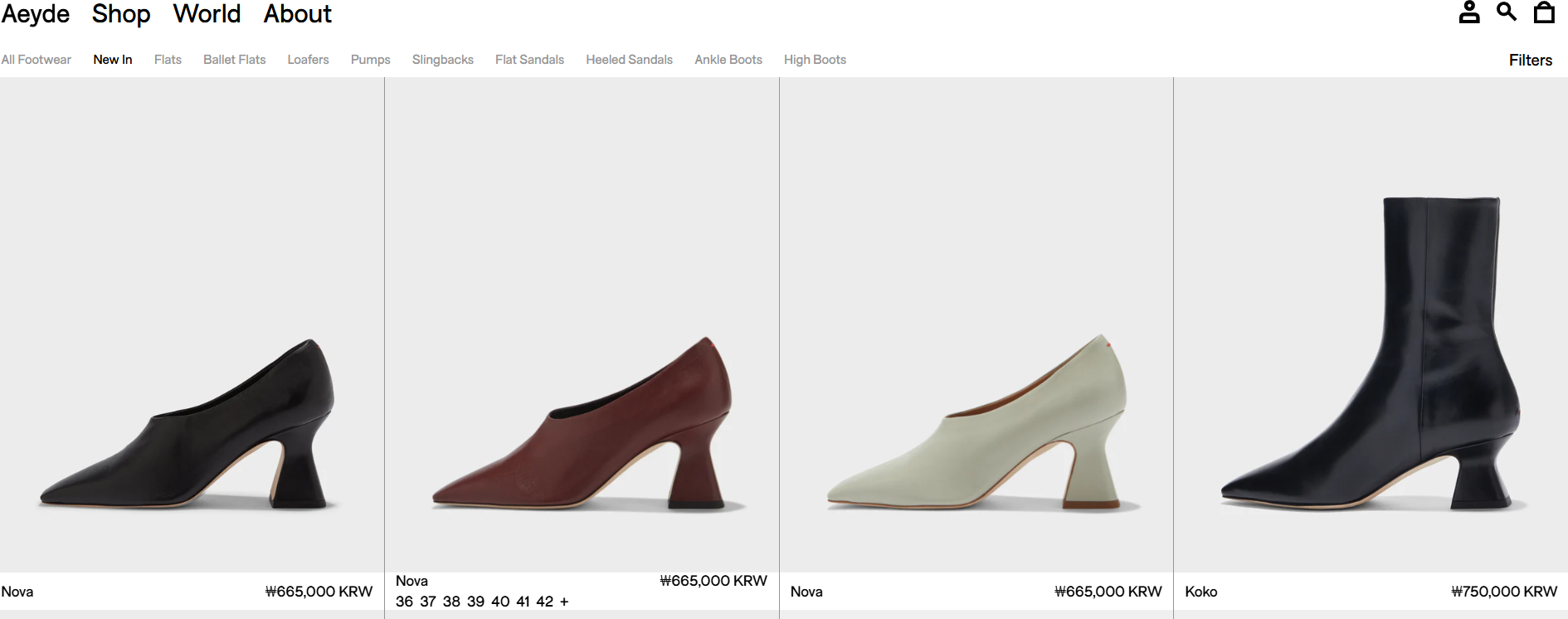 ✅ 결론: Aeyde는 단순한 신발 브랜드가 아니라, 기능성과 아름다움을 동시에 만족시키는 프리미엄 슈즈 브랜드로 성장하고 있다.