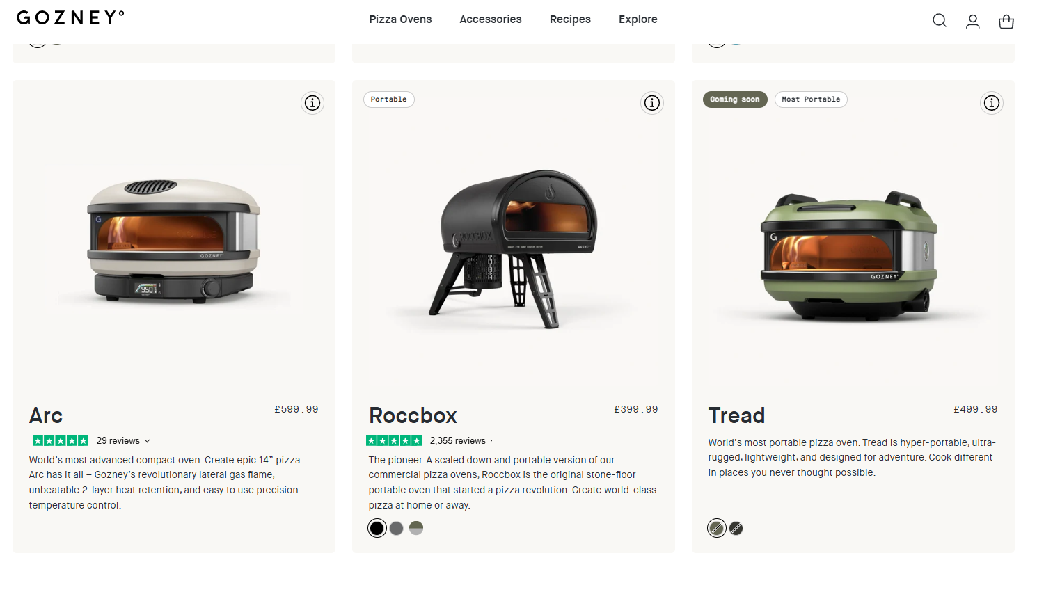 | Roccbox(록스박스) | Gozney의 대표 포터블 모델 | 동일 브랜드 제품, Gozney의 상징적인 제품 |